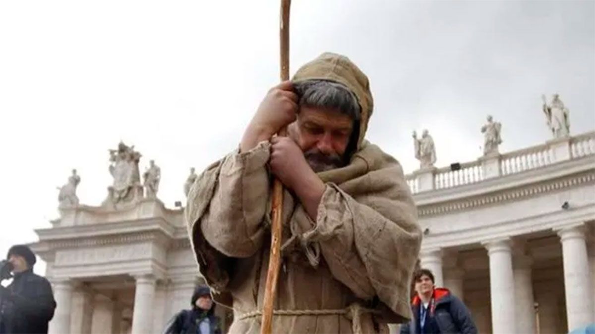 Mientras miles de fieles festejaban, otros tantos fueron sorprendidos por la reaparición de Coppo. Vestido con un hábito franciscano, un bastón, unas alpargatas y un bolso al hombro, el hombre de 64 años se apareció en la Plaza de San Pedro para rezar por el nuevo Sumo Pontífice.