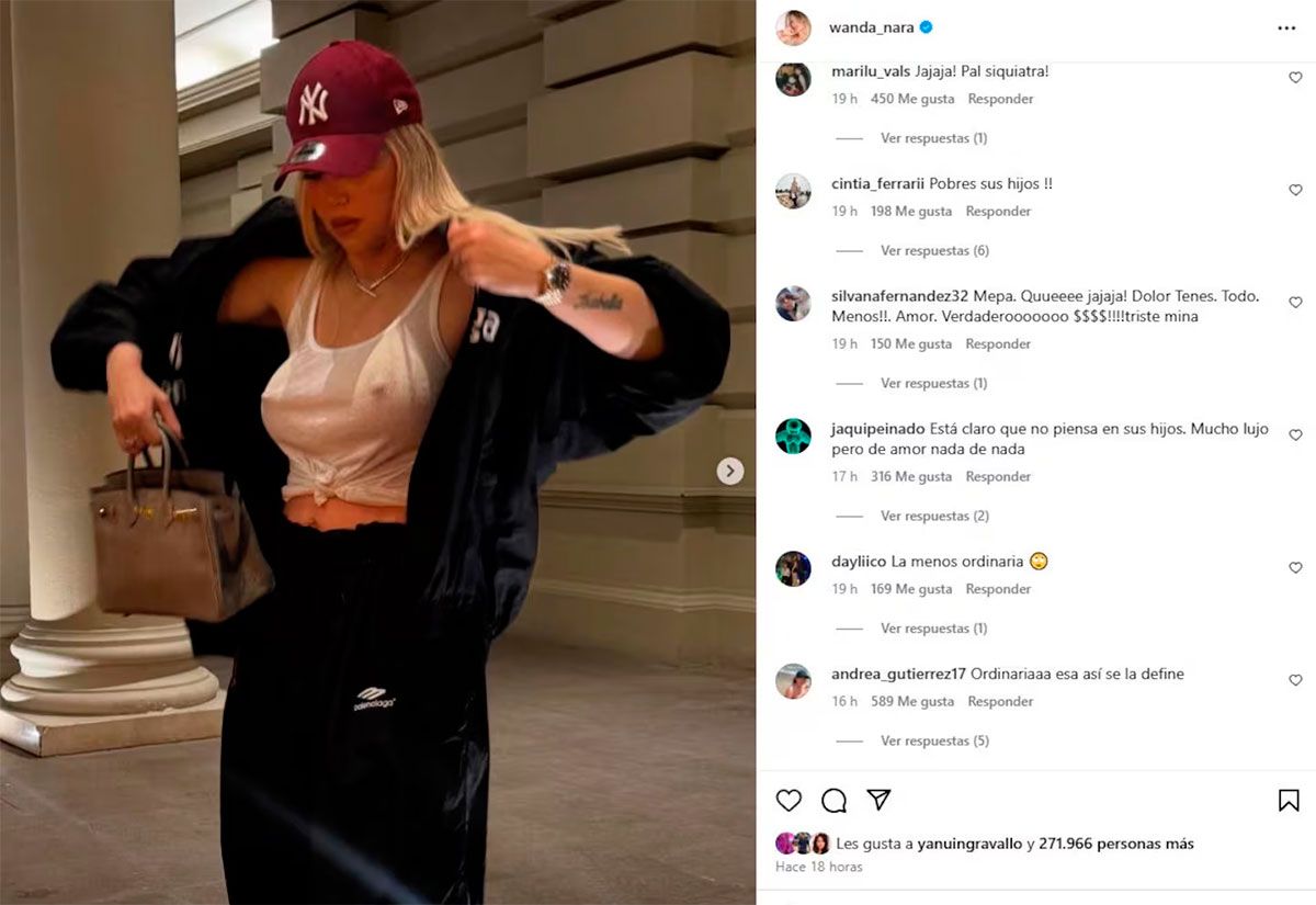 Las postales explícitas -por la prenda casi traslúcida- enfurecieron a varios usuarios, y muchos de ellos le preguntaron si no piensa en lo que pueden llegar a decir los compañeros de colegio de sus hijos varones, fruto de su relación con Maxi López.