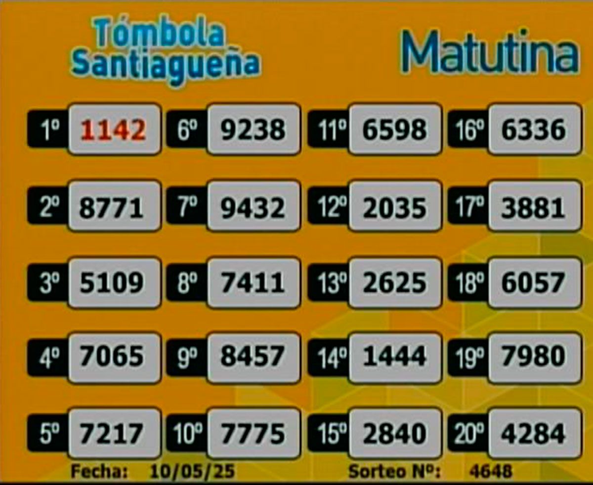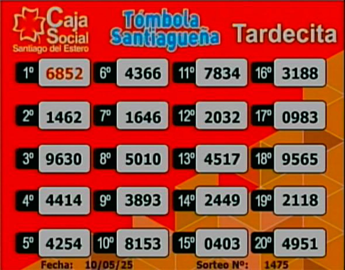 Este sábado 10 de mayo del 2025, como todos los días, se llevó a cabo un nuevo sorteo de la Tómbola Santiagueña.