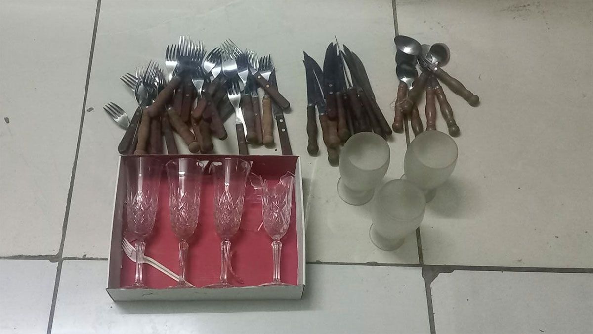 El malviviente llevaba una mochila con 15 cuchillos, 25 tenedores, 6 cucharas, 3 vasos de vidrio y una caja con 4 copas, sin poder justificar su procedencia.