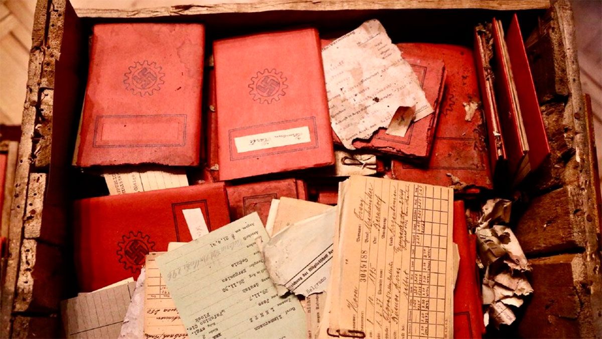 Entre esos papeles había postales, fotos y material propagandístico del régimen nazi. Y miles de libretas: algunas de la Organización del Partido Nacional Socialista en el exterior y otras de la Unión Alemana de Gremios.