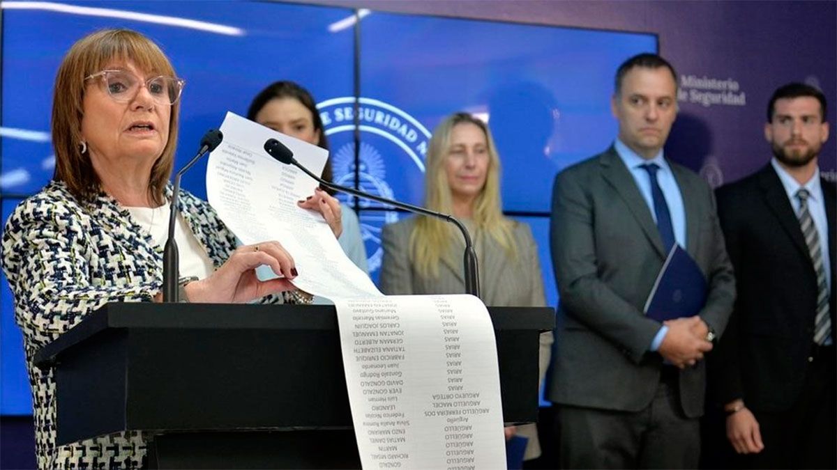 Lo anunció la ministra de Seguridad, Patricia Bullrich, en una conferencia a la que asistieron también Karina Milei y el candidato porteño Manuel Adorni. El listado se armó con datos del programa Tribuna Segura.
