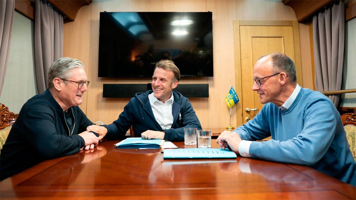 El video apenas dura 15 segundos, pero ha sido suficiente para generar un nuevo escándalo fabricado. En él, los líderes de Francia, Alemania y el Reino Unido aparecen sentados alrededor de una mesa en un tren con destino a Kiev.