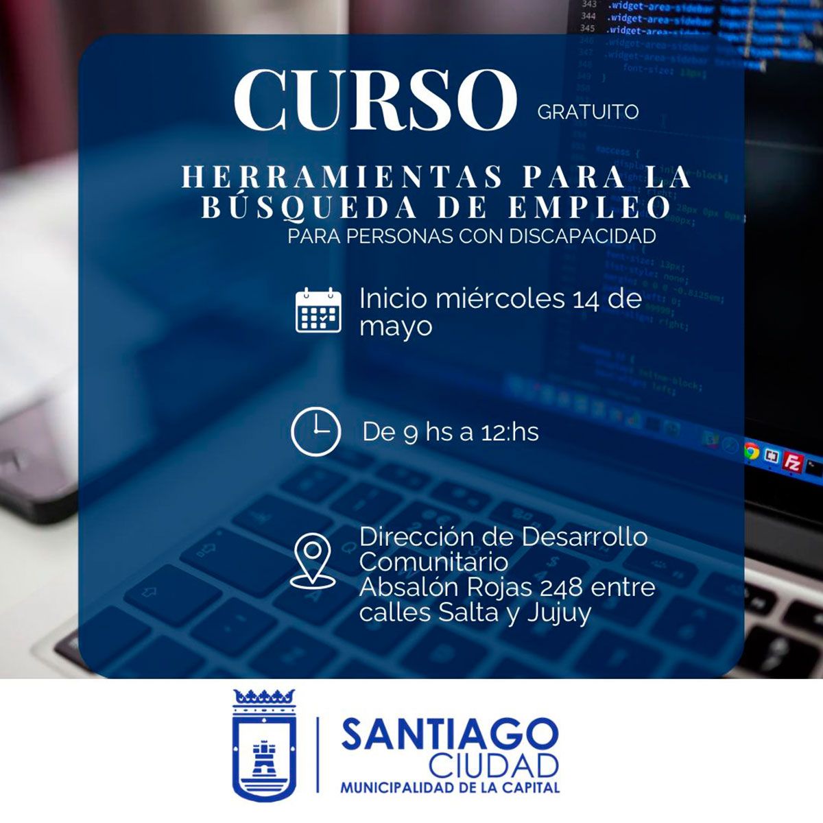 La Dirección de Desarrollo Comunitario de la Capital realizará un nuevo curso gratuito de "Herramientas para la búsqueda de Empleo" destinado a personas con discapacidad.