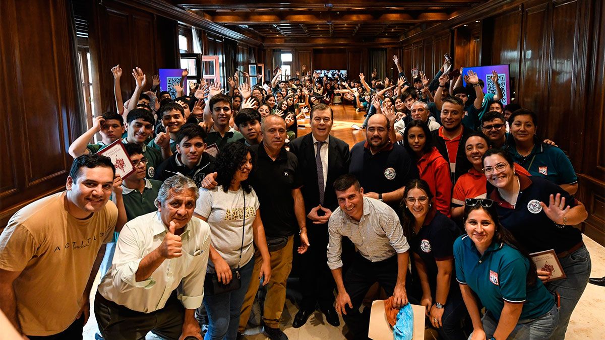 El mandatario agradeció la visita, tanto de los alumnos como de los docentes que los acompañaron. “Para mí es una alegría poder saludar a los estudiantes de las distintas escuelas que llegan a través del programa que ya tiene varios años y tiene como objetivo que puedan visitar los lugares históricos, turísticos, deportivos, culturales e institucionales que tiene nuestra provincia y que son de todos ustedes”, dijo.