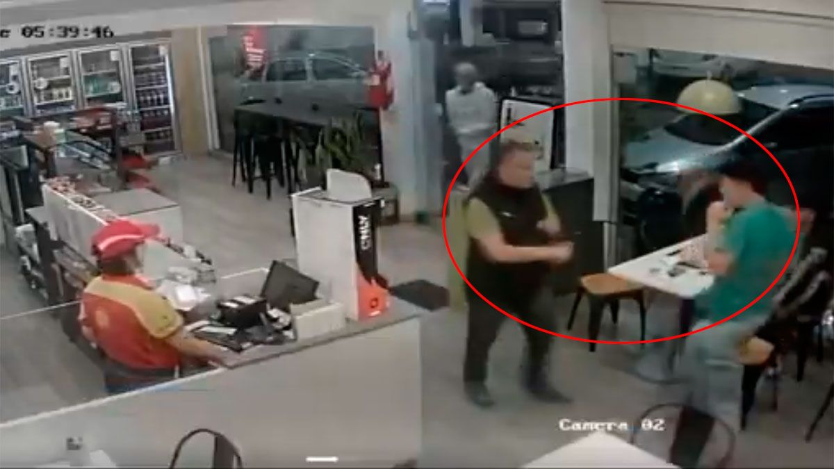 En las impactantes imágenes se puede ver que dos hombres entraron al local y atacaron a dos amigos que tomaban un café en una de las mesas. Entre el forcejeo, las patadas y las piñas, uno de ellos sacó un arma blanca y apuñaló a otro en la espalda.