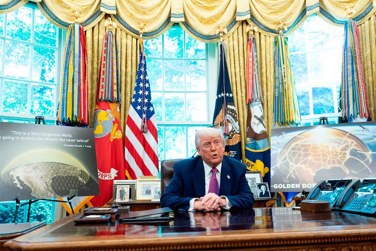 El mandatario anunció en marzo, cuando se dirigió a la sesión conjunta del Congreso, su intención de construir esta cúpula y pidió a los legisladores que “financiaran un escudo antimisiles de cúpula dorada de última generación para proteger la patria, fabricado en Estados Unidos”.