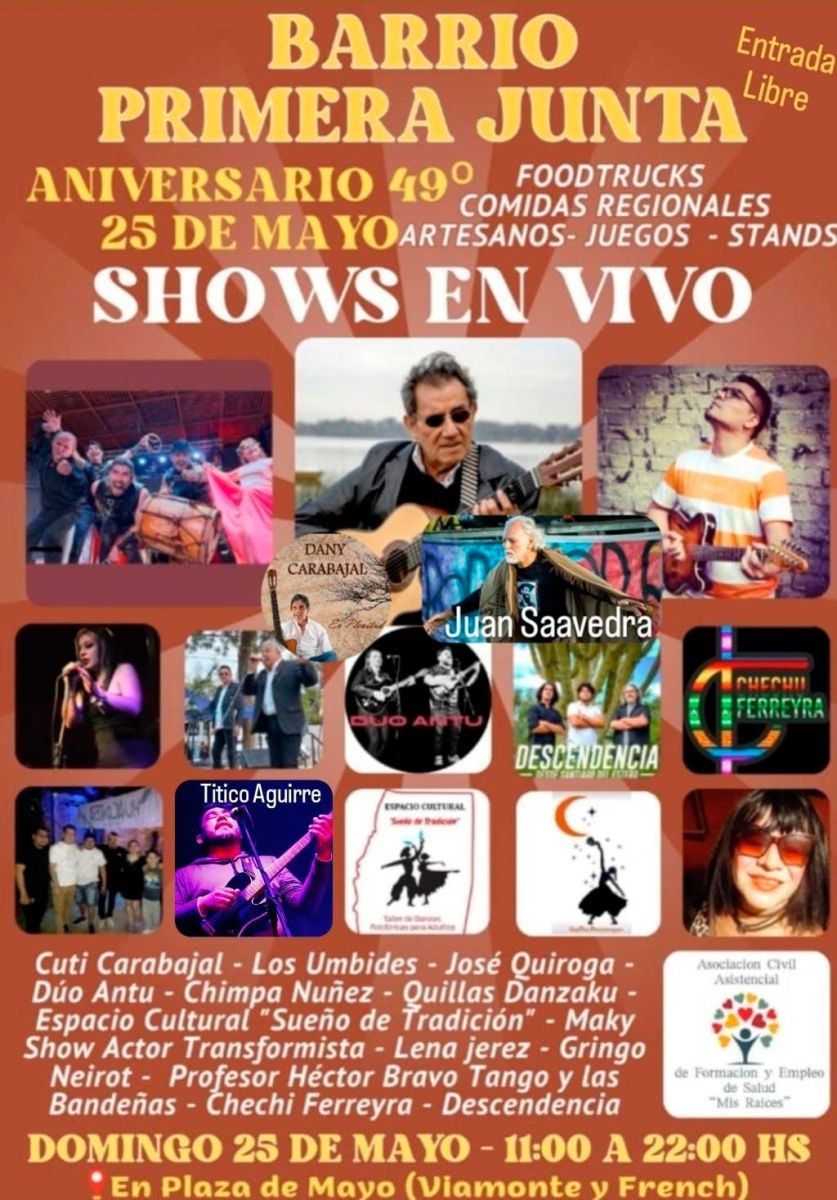 El próximo domingo 25 de mayo, el Barrio Primera Junta tirará la casa por la ventana con una gran fiesta para conmemorar su 49º aniversario.
