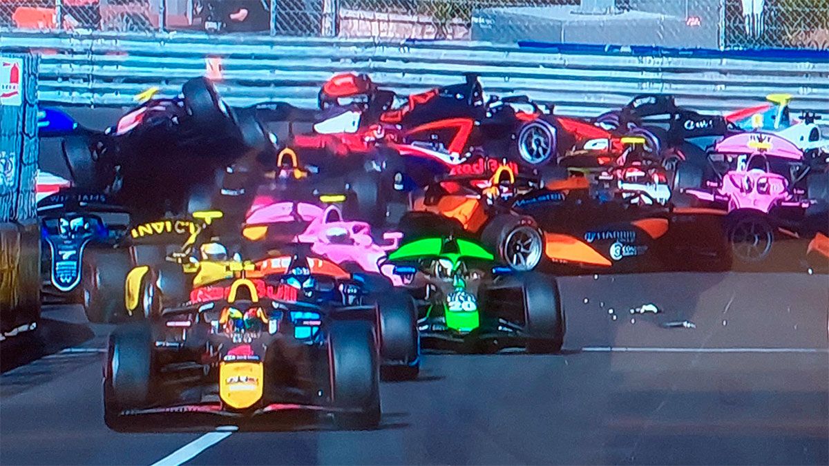 Caótico inicio de la Fórmula 2 en Mónaco. Un toque entre los líderes Alex Dunn y Victor Martins provocó un multitudinario incidente tras la largada.