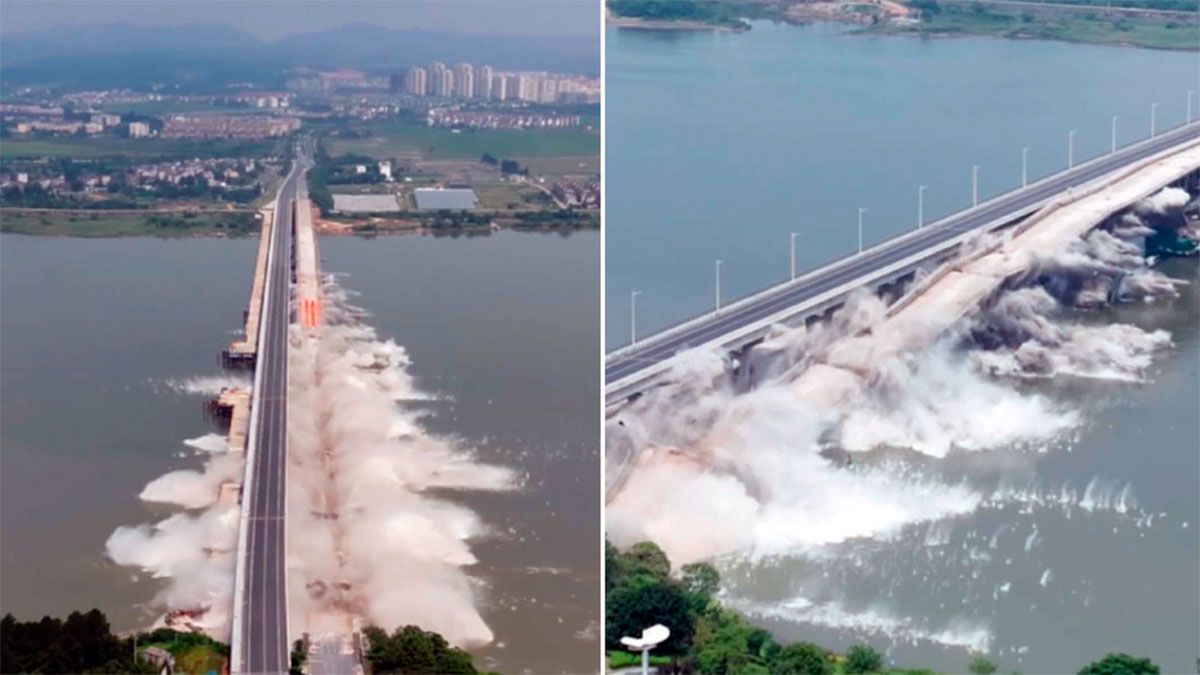 Un viejo puente en la provincia china de Jiangxi fue demolido mediante una explosión controlada.