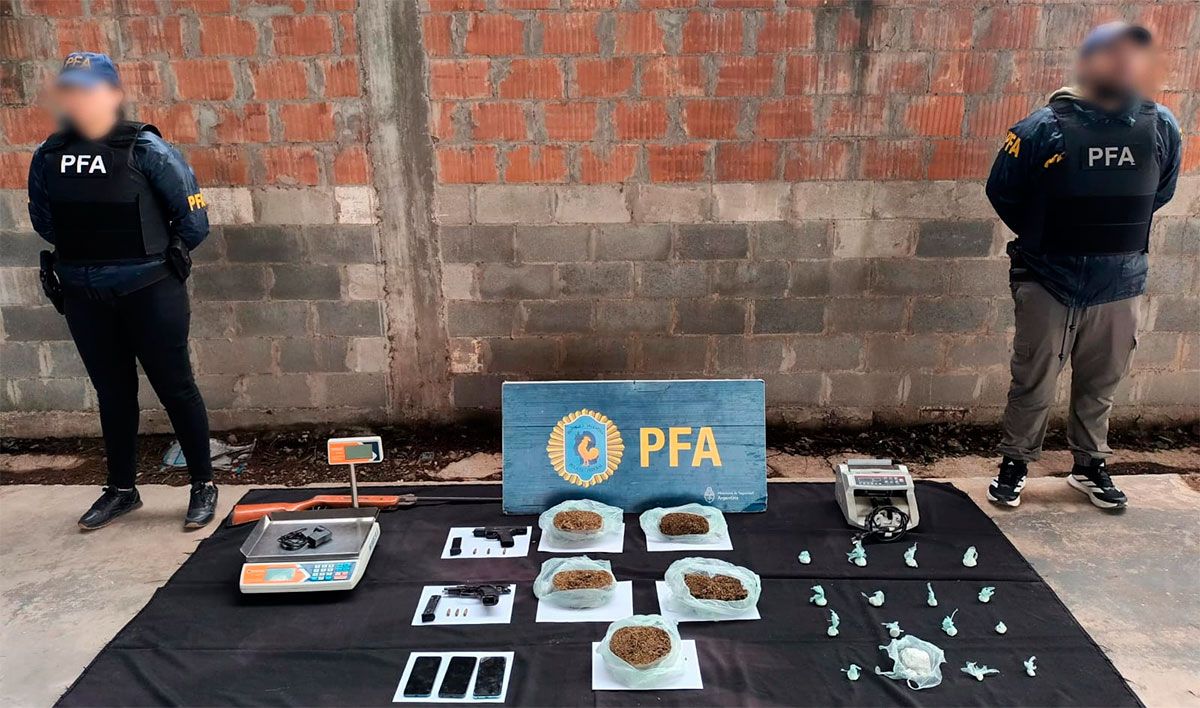 Como resultado a esa manda judicial, los funcionarios policiales detuvieron a un hombre, sindicado como el principal responsable de las actividades ilícitas. Asimismo, en el marco de dichos procedimientos realizados de manera simultánea, se llevó a cabo el secuestro de 579 dosis de cocaína, 3 kilos de marihuana, un revólver calibre 38 con numeración limada, una carabina 22, dos pistolas calibre 9 mm con varias municiones de distintos calibres, 3 teléfonos celulares, dinero en efectivo en billetes de baja denominación, una balanza digital y documentación de interés para la causa.