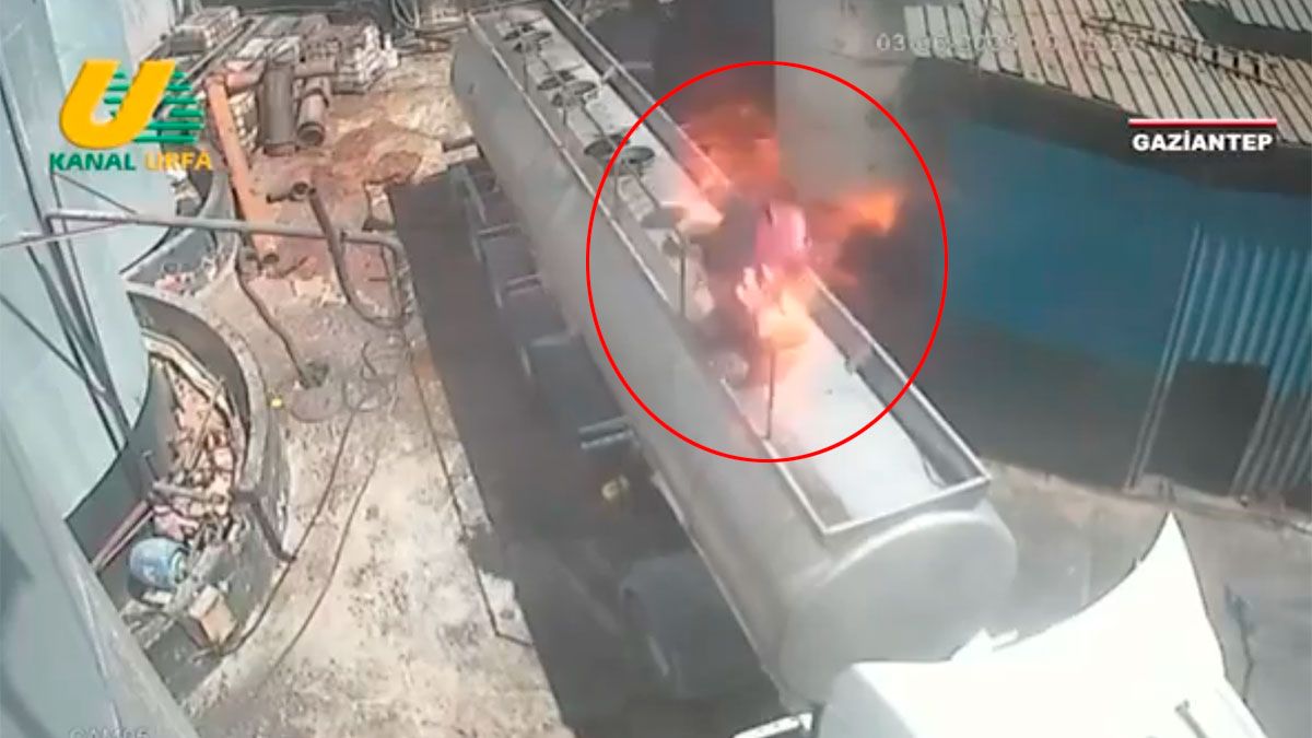Las cámaras de seguridad de un establecimiento, captaron el momento de un grave accidente laboral, cuando un trabajador procedió a la apertura de una escotilla de un camión cisterna, mientras sostenía un cigarrillo encendido en su boca.