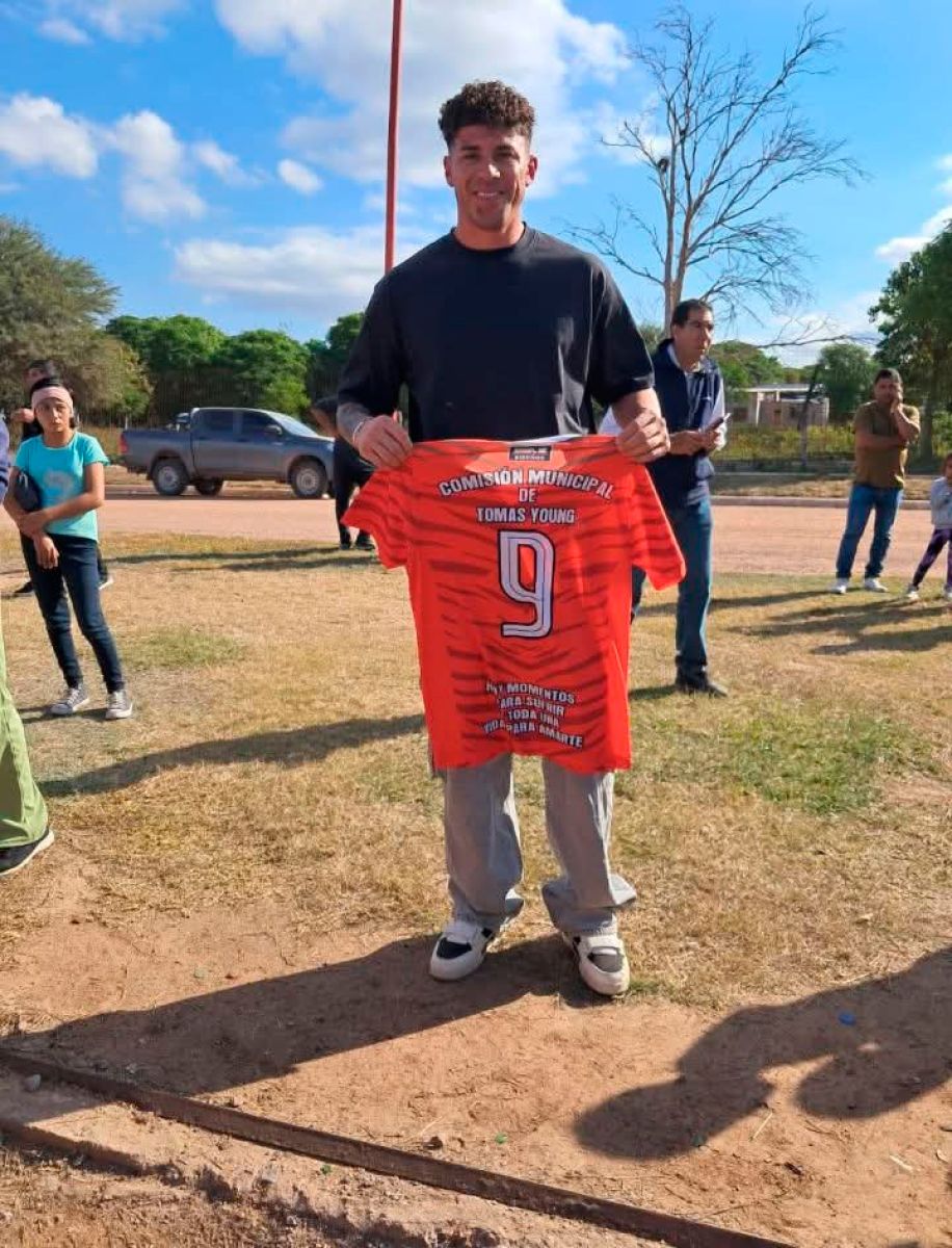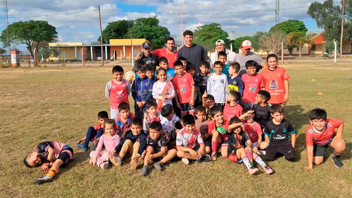 El encuentro se llevó a cabo en el campo de juego del Club Social y Deportivo Tomás Young, Allí, en la humilde cancha del pueblo, lo esperaban decenas de niños con los ojos grandes y mucho entusiasmo. Entre sonrisas, abrazos y mucha emoción, los pequeños disfrutaron de una tarde distinta junto a uno de sus ídolos, quien no escatimó en tiempo ni gestos: firmó autógrafos y se sacó fotos con todos los presentes.