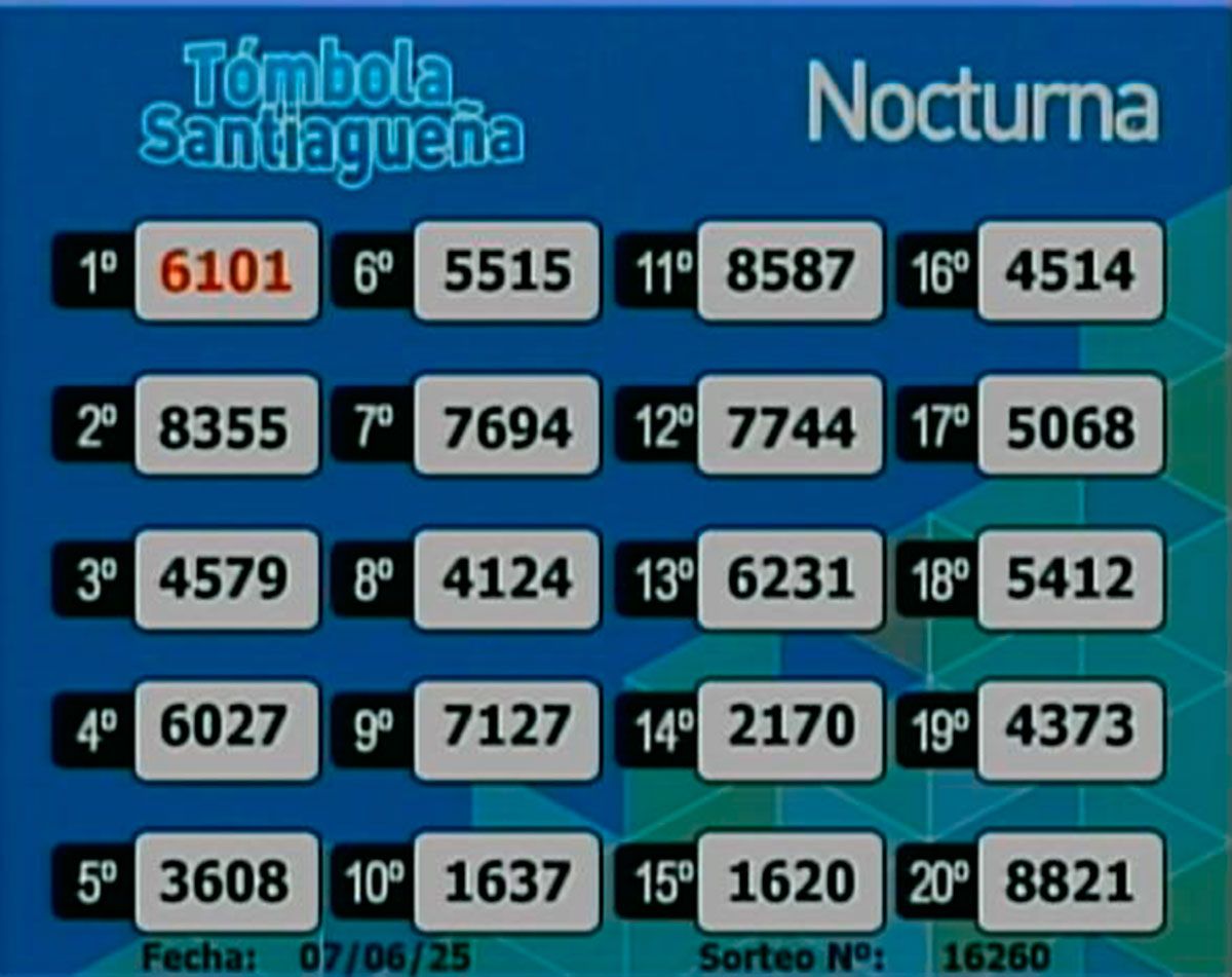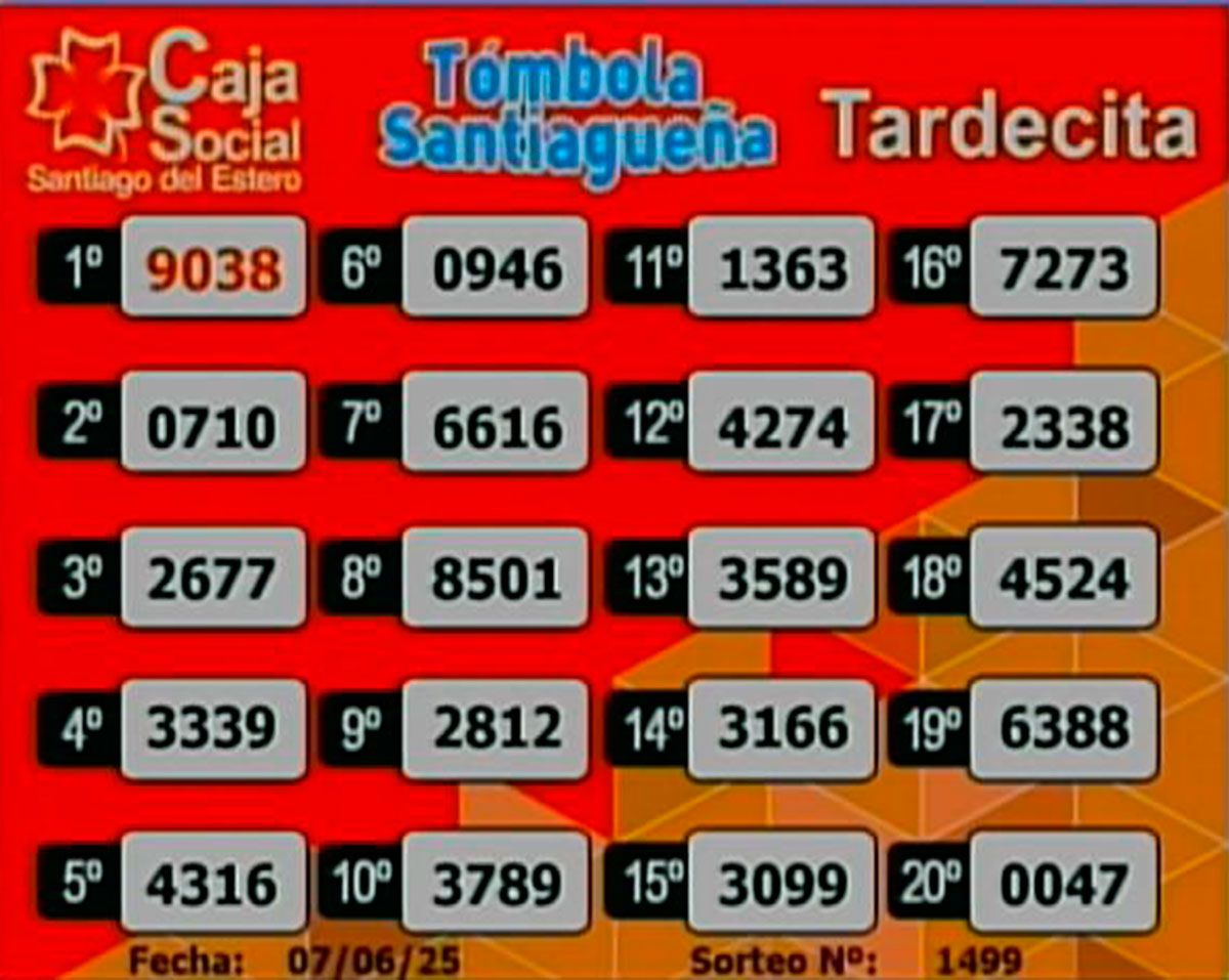 Este sábado 7 de junio de 2025, como todos los días, se llevó a cabo un nuevo sorteo de la Tómbola Santiagueña.