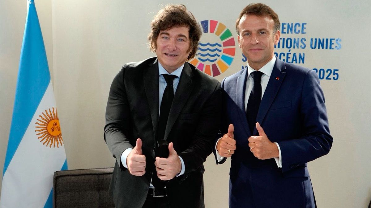 El mandatario asistió al foro climático que se desarrolla en Niza, del 9 al 13 de junio, donde se saludó con visible afecto con el mandatario galo, con quien mantiene un vínculo aceitado pese a las diferencias ideológicas. Lo acompañaron el diputado del PRO Fernando Iglesias, el canciller Gerardo Werthein y el embajador de Argentina en Francia, Ian Sielecki.