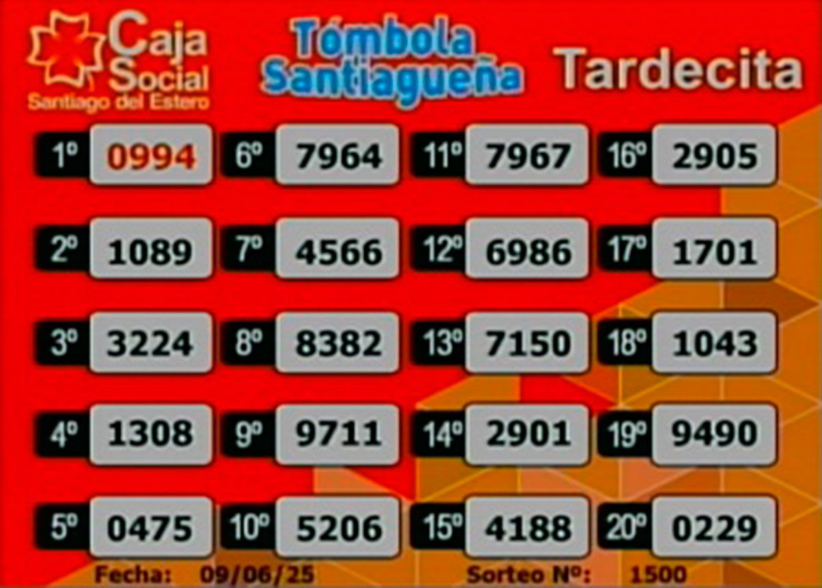Este lunes 9 de junio de 2025, como todos los días, se llevó a cabo un nuevo sorteo de la Tómbola Santiagueña.