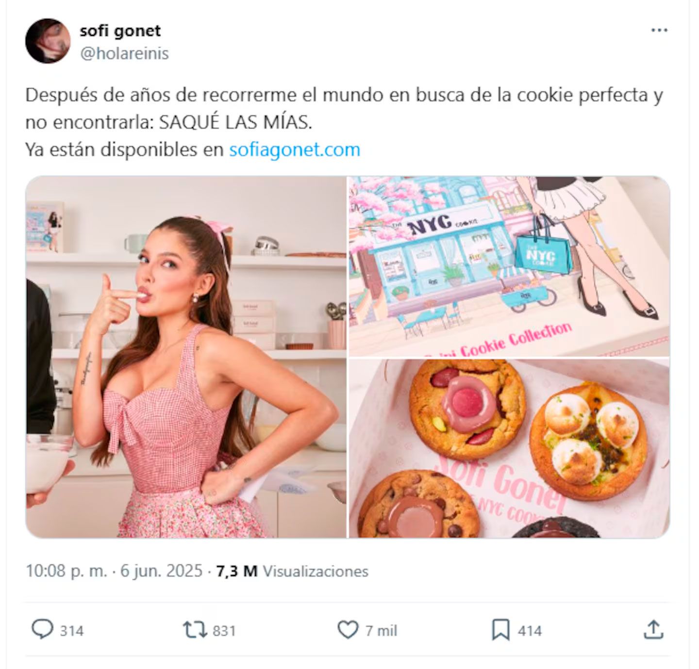 “Después de años de recorrerme el mundo en busca de la cookie perfecta y no encontrarla, saqué las mías”, escribió la influencer en sus perfiles oficiales para anunciar la salida de este producto.