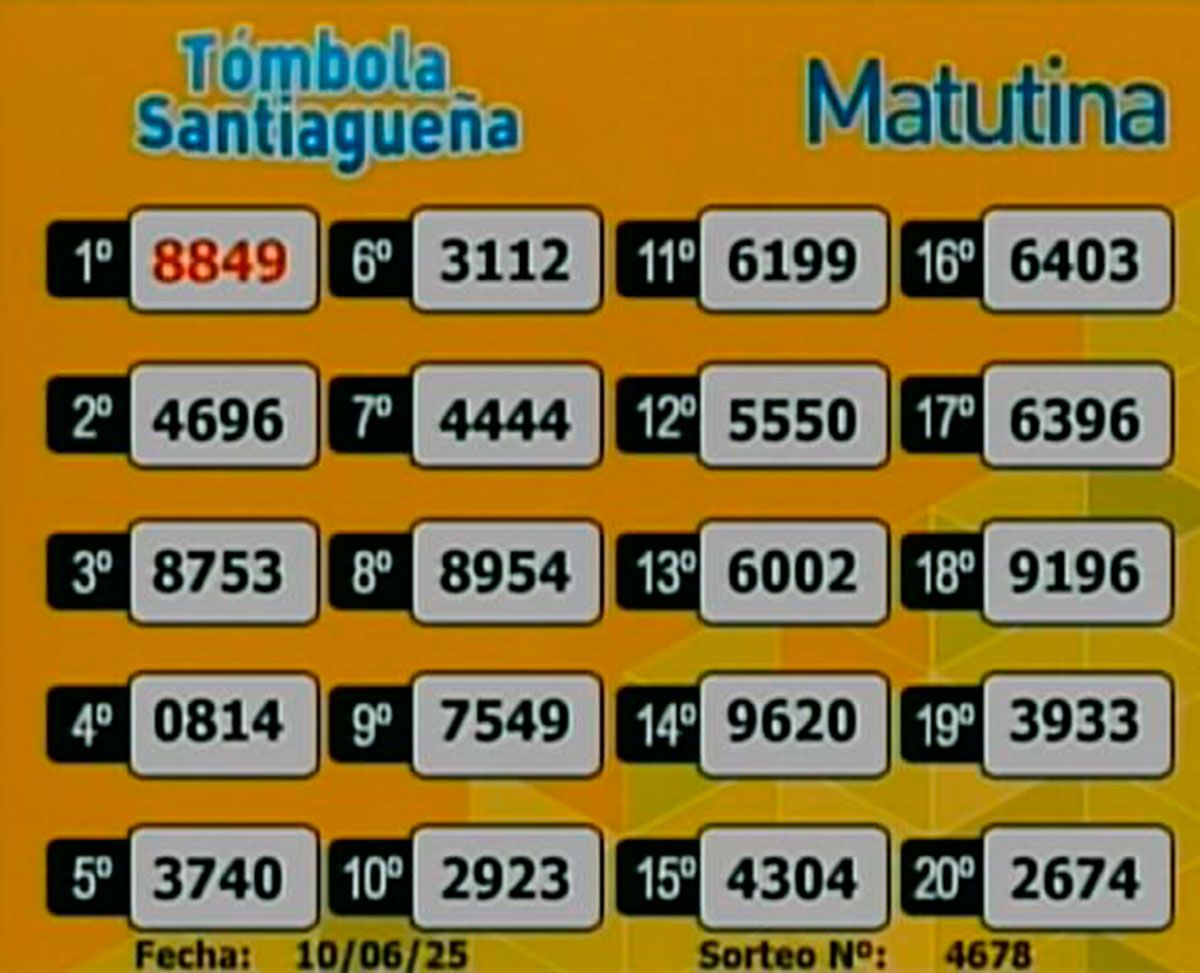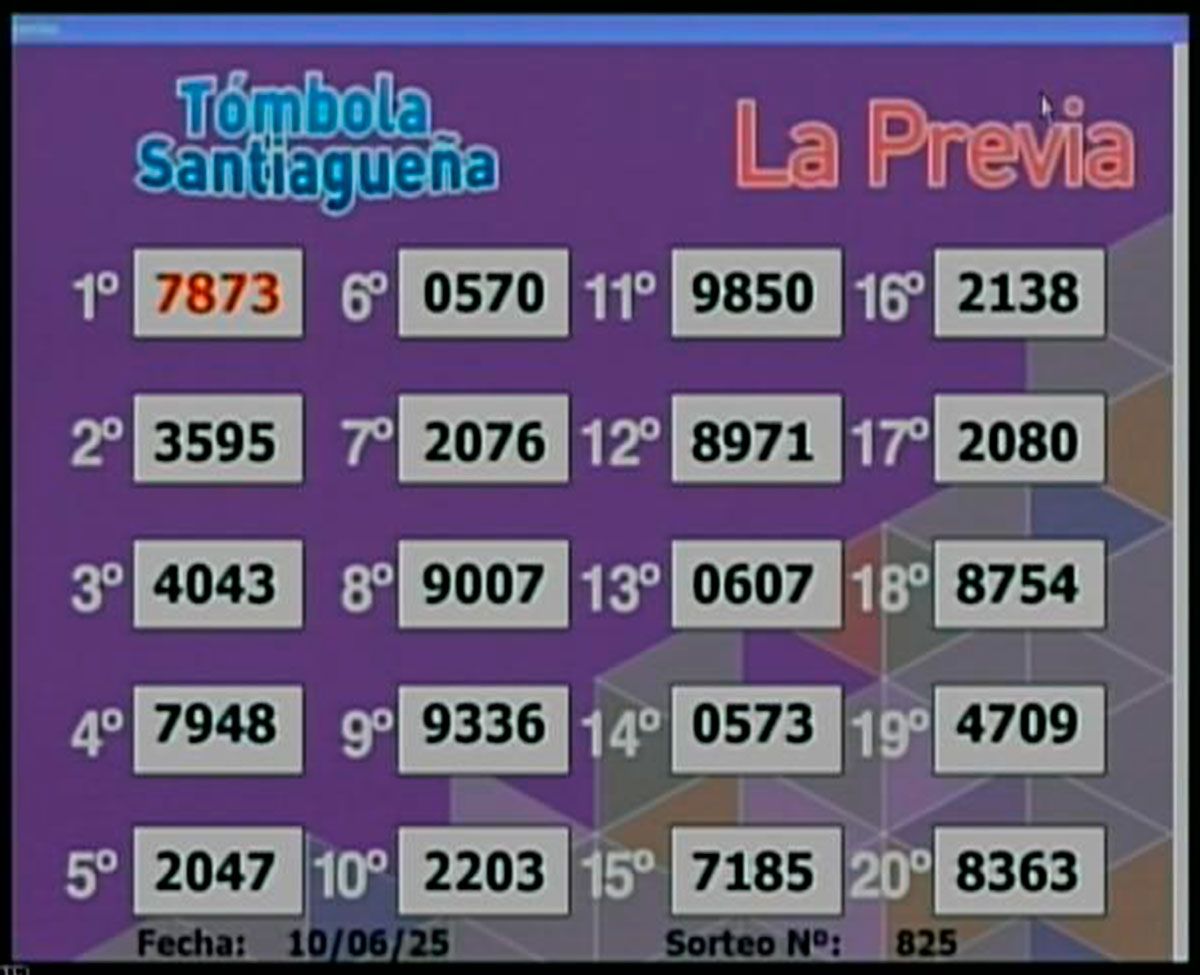 Este martes 10 de junio de 2025, como todos los días, se llevó a cabo un nuevo sorteo de la Tómbola Santiagueña.