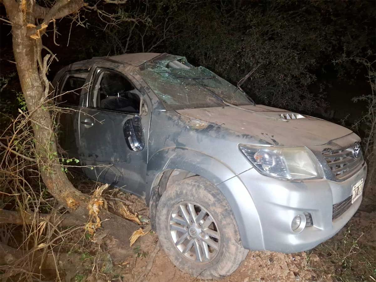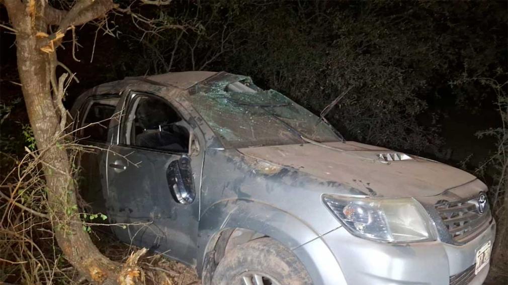 Al dialogar con el conductor de la camioneta Toyota Hilux, identificado como Luis Villarreal de 57 años, quién indicó que provenía junto a su grupo familiar de un campo de la zona, cuando perdió el control del vehículo por la alta velocidad en que se conducía sumado al estado del camino enripiado.