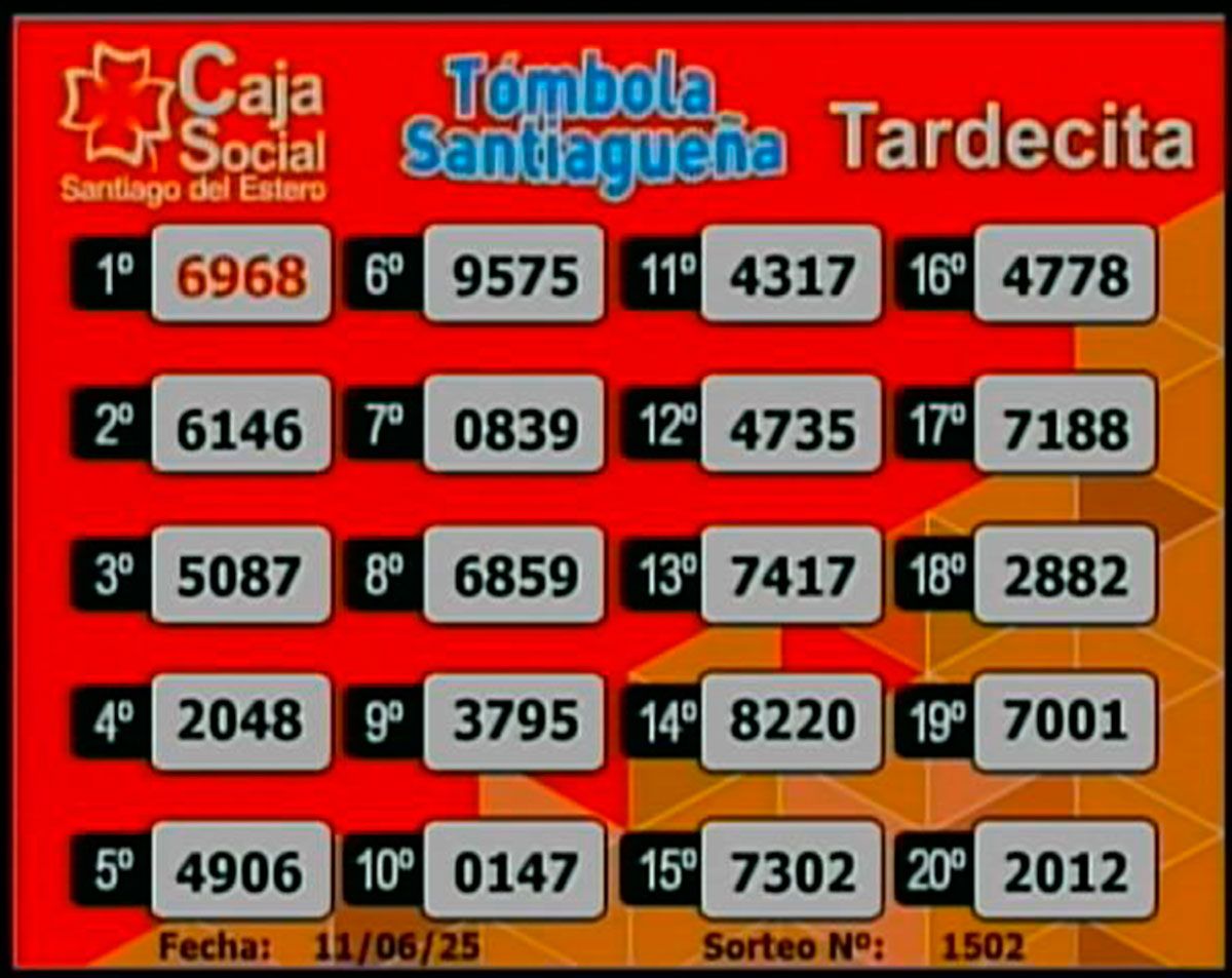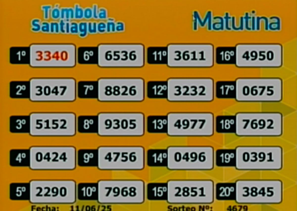 Este miércoles 11 de junio de 2025, como todos los días, se llevó a cabo un nuevo sorteo de la Tómbola Santiagueña.