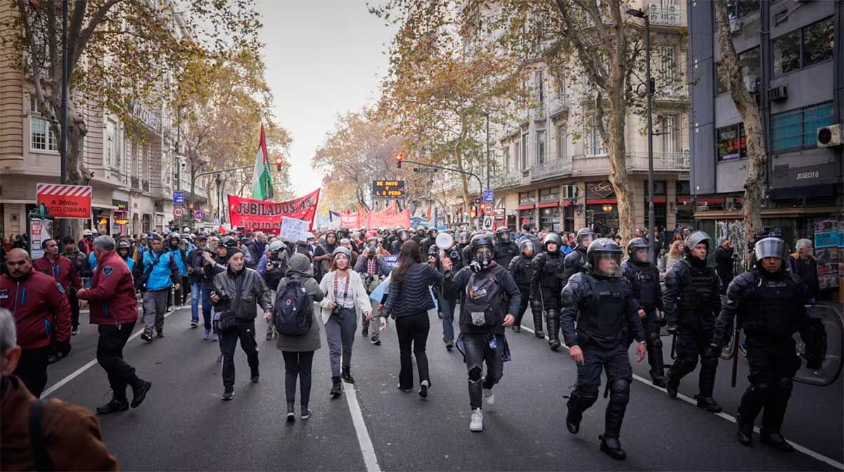 Las fuerzas de seguridad buscaron despejar el tránsito. En la movilización participaron gremios, organismos de derechos humanos y agrupaciones políticas. También se movilizaron los residentes de hospitales porteños, colectivos de discapacidad y, como cada miércoles, los jubilados.