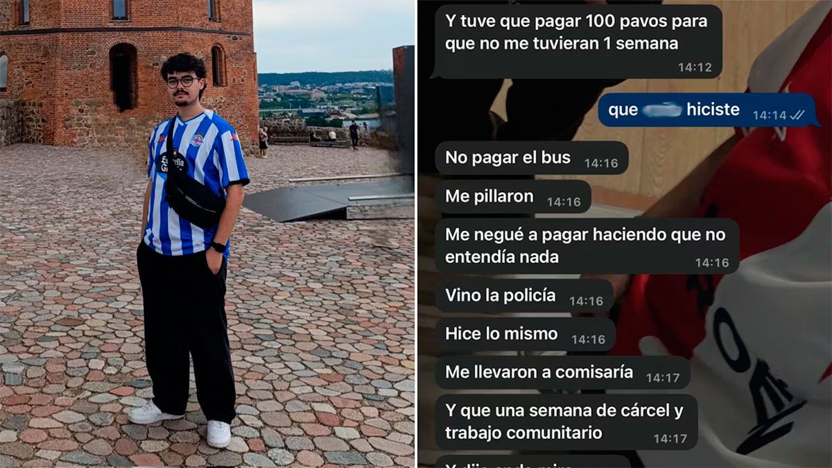 La historia se conoció gracias a un posteo de su amigo en la red social X (ex Twitter), bajo la cuenta @gaelkaa. Allí, compartió una captura del chat que tuvo con Manuel tras enterarse del incidente. “¿Qué c... hiciste?”, le preguntó sorprendido. La respuesta fue tan absurda como inesperada: “No pagar el bus, me pillaron, me negué a pagar haciendo que no entendía nada”.