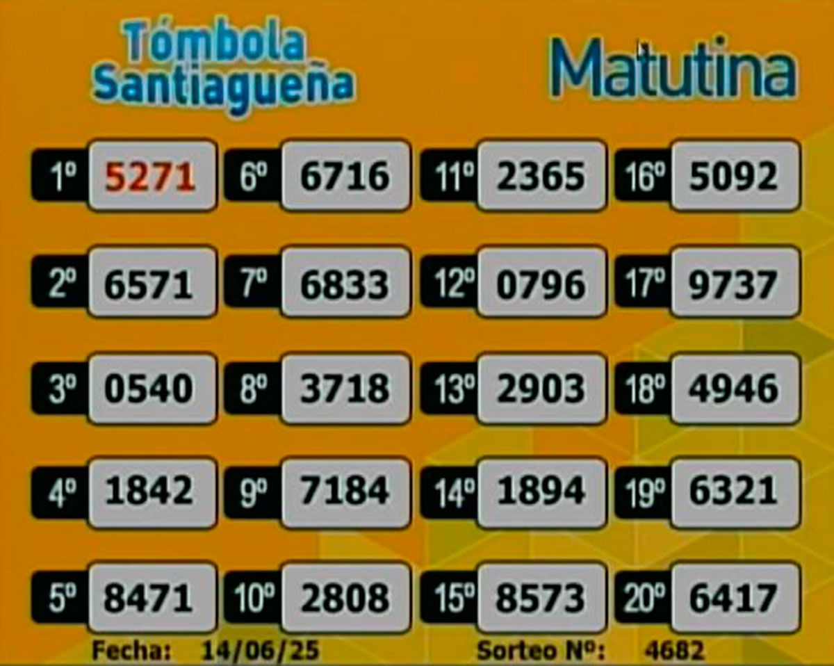 Este sábado 14 de junio de 2025, como todos los días, se llevó a cabo un nuevo sorteo de la Tómbola Santiagueña.