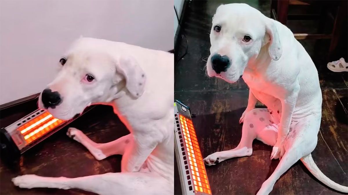 En las imágenes, la perra no solo muestra una postura digna de alguien que conoce perfectamente dónde está el mejor lugar de la casa durante el invierno, sino que además genera simpatía por su aparente necesidad urgente de calor, algo que muchos humanos también sienten con la llegada del frío.
