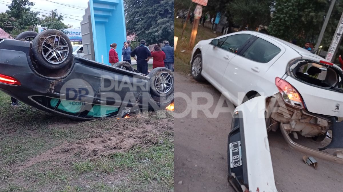 A raíz del fuerte impacto, el Peugeot realizó un trompo sobre la calzada, mientras que el Mercedes-Benz terminó su recorrido en la banquina, donde volcó y quedó con importantes daños materiales.