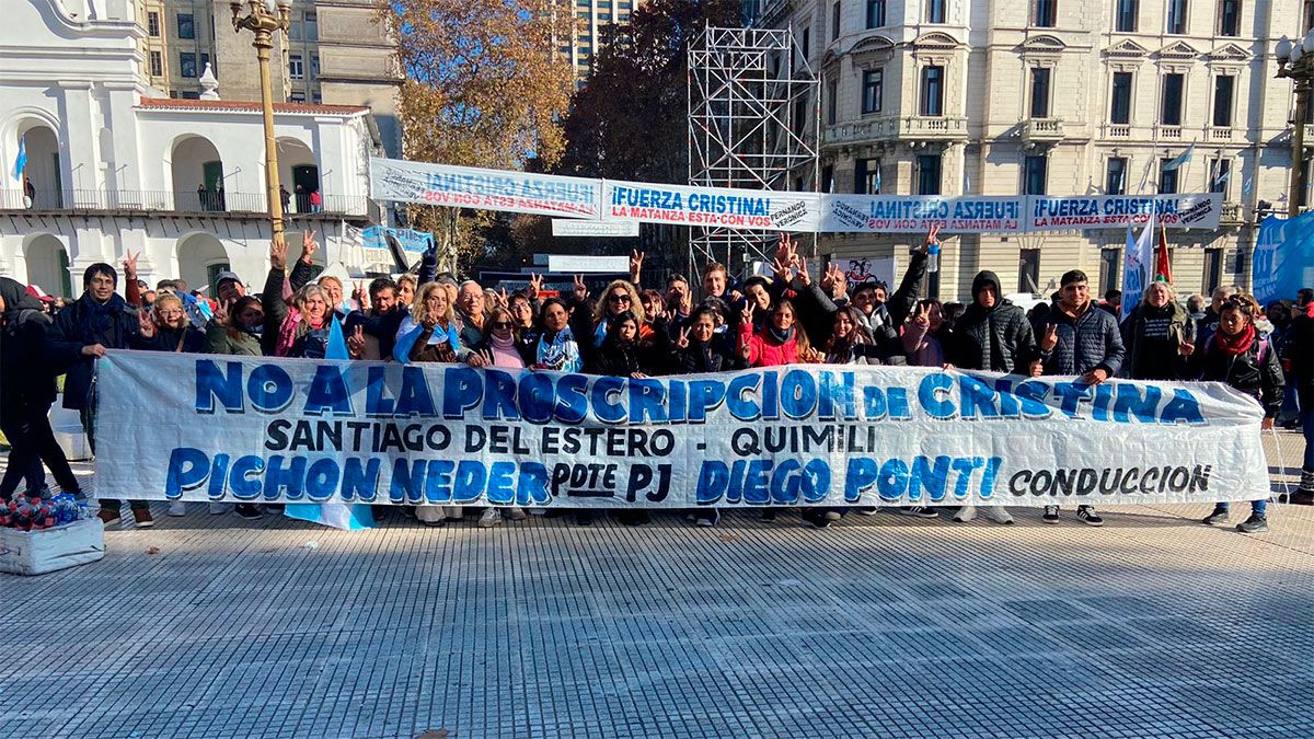 Un nutrido grupo de santiagueños brindan su apoyo a la expresidenta, que comenzó a cumplir su condena en su departamento de Constitución. Comunicación con Radio Panorama.