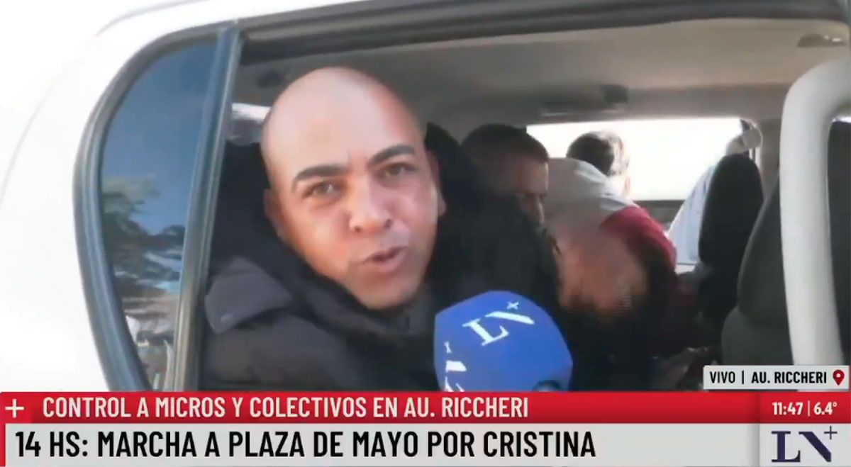 Según indicaron fuentes oficiales, el detenido se encontraba a bordo de un vehículo Toyota Hilux cuando "brindó declaraciones al medio periodístico LN+ que se encuentra en el lugar, manifestando improperios y amenazando la integridad física del Sr. Presidente de la Nación, Dr. Javier Milei".