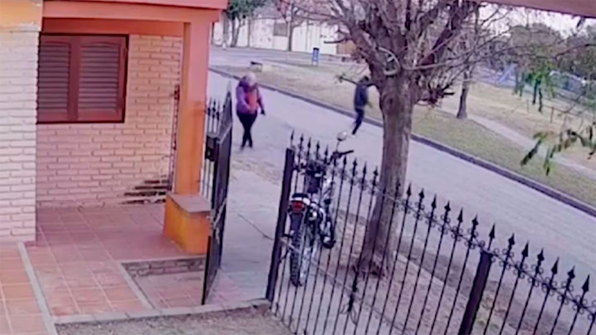 El intento de robo ocurrió el viernes feriado, cerca de las 8 de la mañana, en el barrio Los Robles, precisamente en la esquina de Bengolea y Pedro Castañeda. La víctima fue sorprendida por el ladrón y toda la secuencia quedó registrada gracias a una cámara de seguridad.