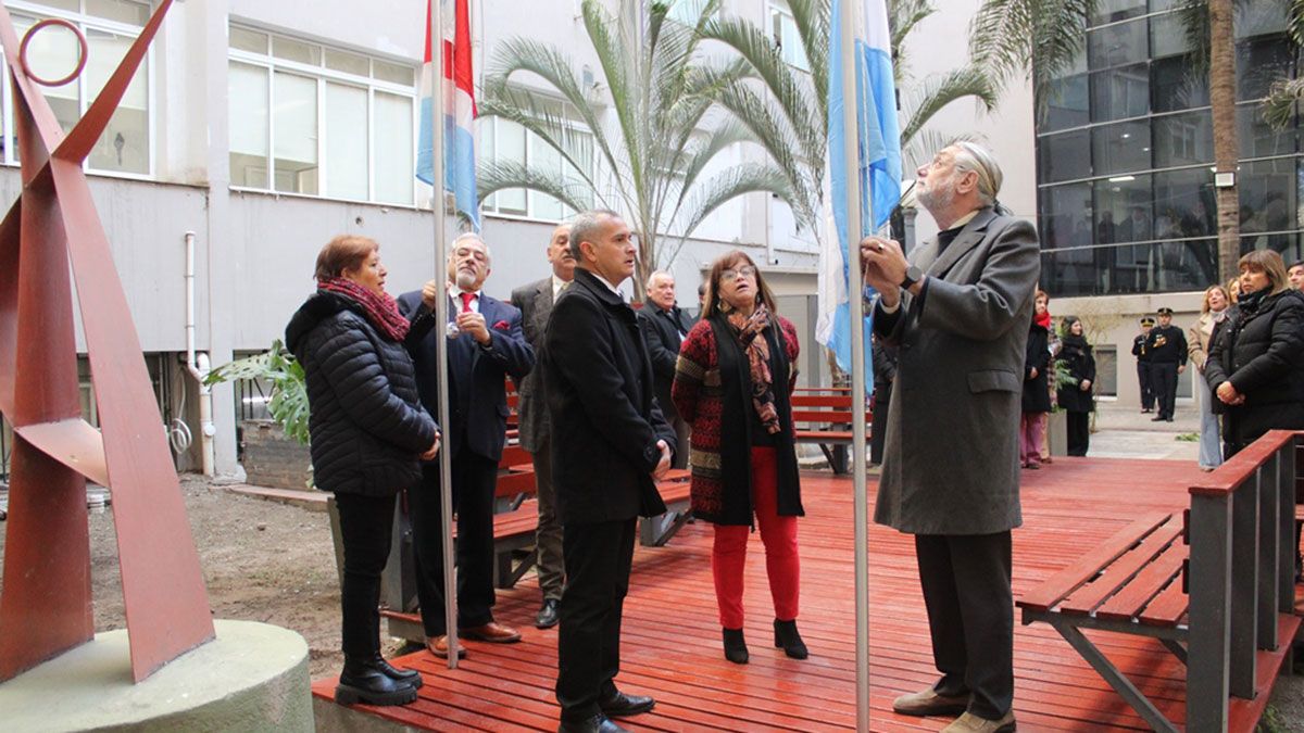 En tanto, el izamiento de la enseña de la Provincia lo realizó el Dr. López Alzogaray, el Dr. Cristian Vittar, vocal de la Cámara de Apelaciones Penal y Tribunal de Alzada y la Sra. Silvia Lombardi, secretaria adjunta de la Asociación Sindical de Empleados Judiciales.