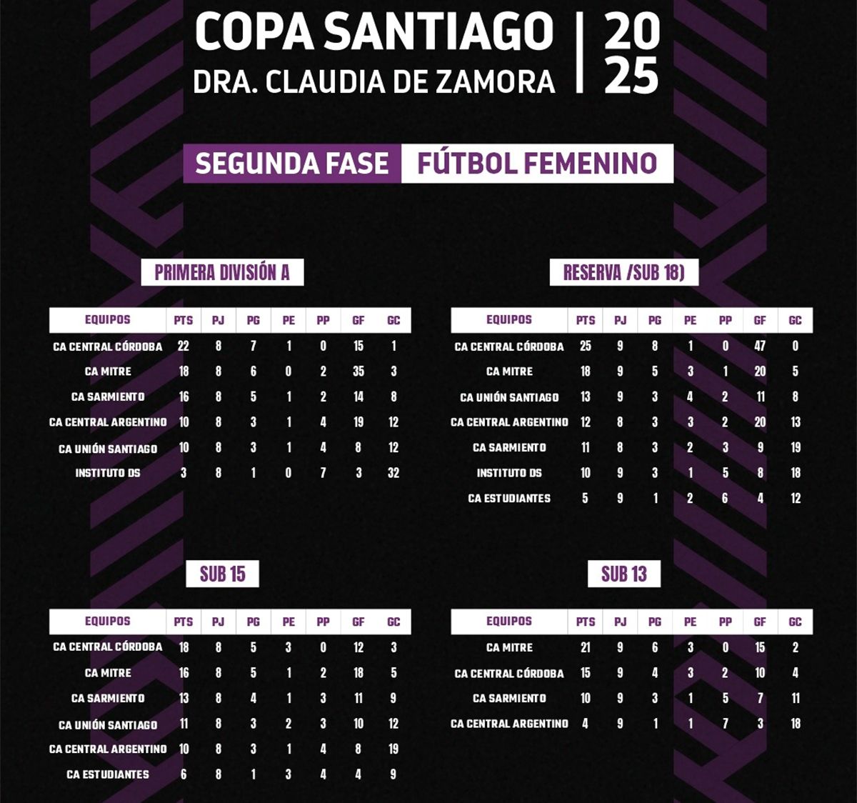 La Copa Santiago avanza con intensidad en todas sus categorías, con definiciones ajustadas y actuaciones destacadas que animan la competencia oficial femenina organizada por la Liga Santiagueña de Fútbol.