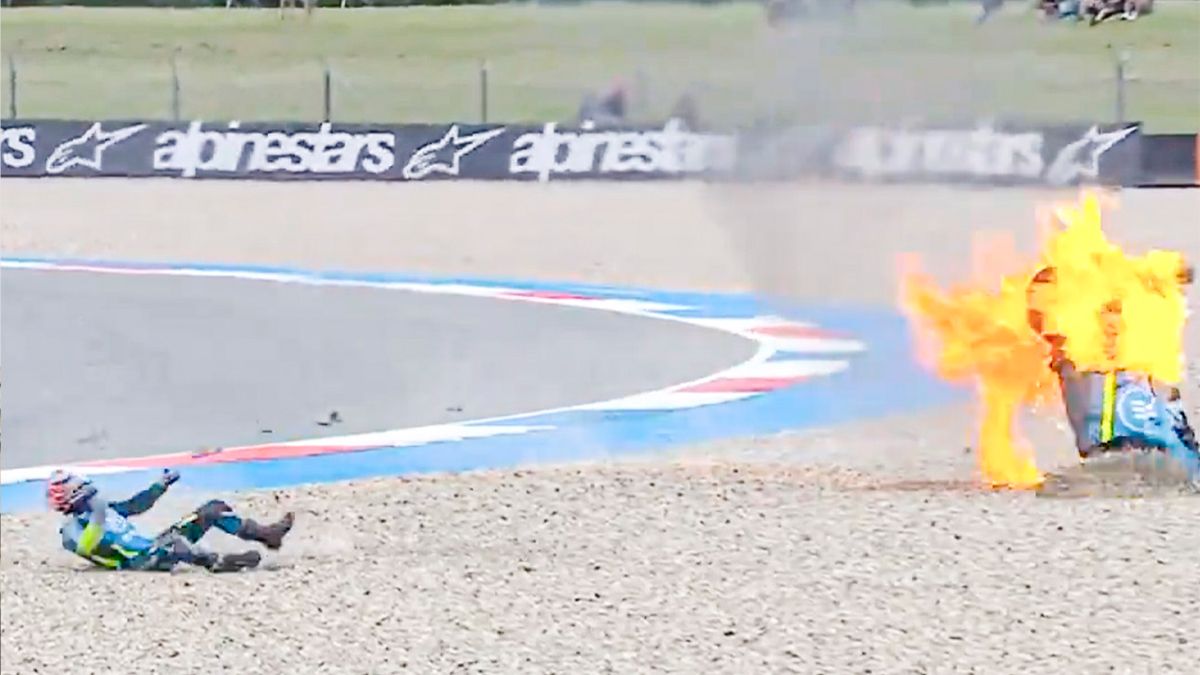Un fuerte accidente sacudió este viernes la jornada de entrenamientos del MotoGP en el circuito de Assen, en Países Bajos, cuando el piloto japonés Ai Ogura sufrió una caída que provocó el incendio de su motocicleta y obligó a mostrar la bandera roja para detener la actividad.