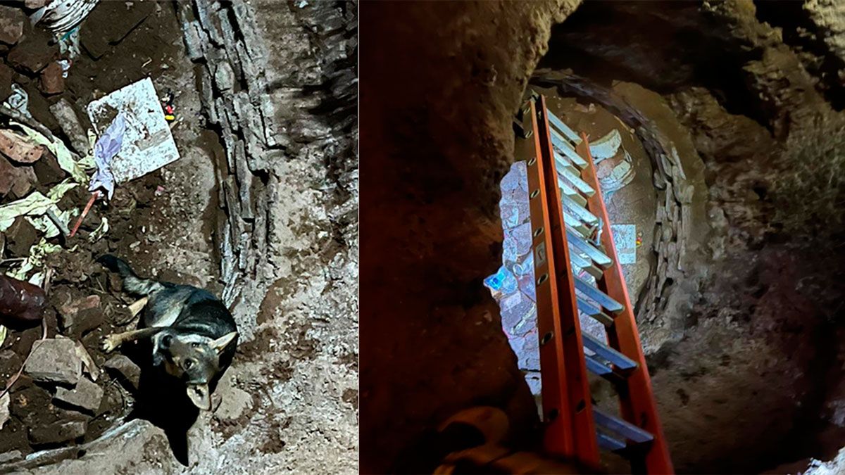 Con la ayuda de una escalera y luego de evaluar la seguridad del terreno, los efectivos lograron sacar al animal de la trampa mortal en la que había caído. El can fue puesto a salvo sin daños mayores.
