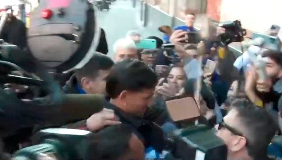 El arribo se dio a las 7 de la mañana y, para evitar un caos por el fervor popular, fue escoltado por una comitiva de la AFA. Aún así, la revolución se trasladó a la clínica donde cientos de fanáticos se agolparon para recibirlo mientras ingresaba para completar los chequeos médicos de rutina.