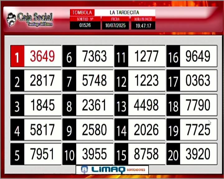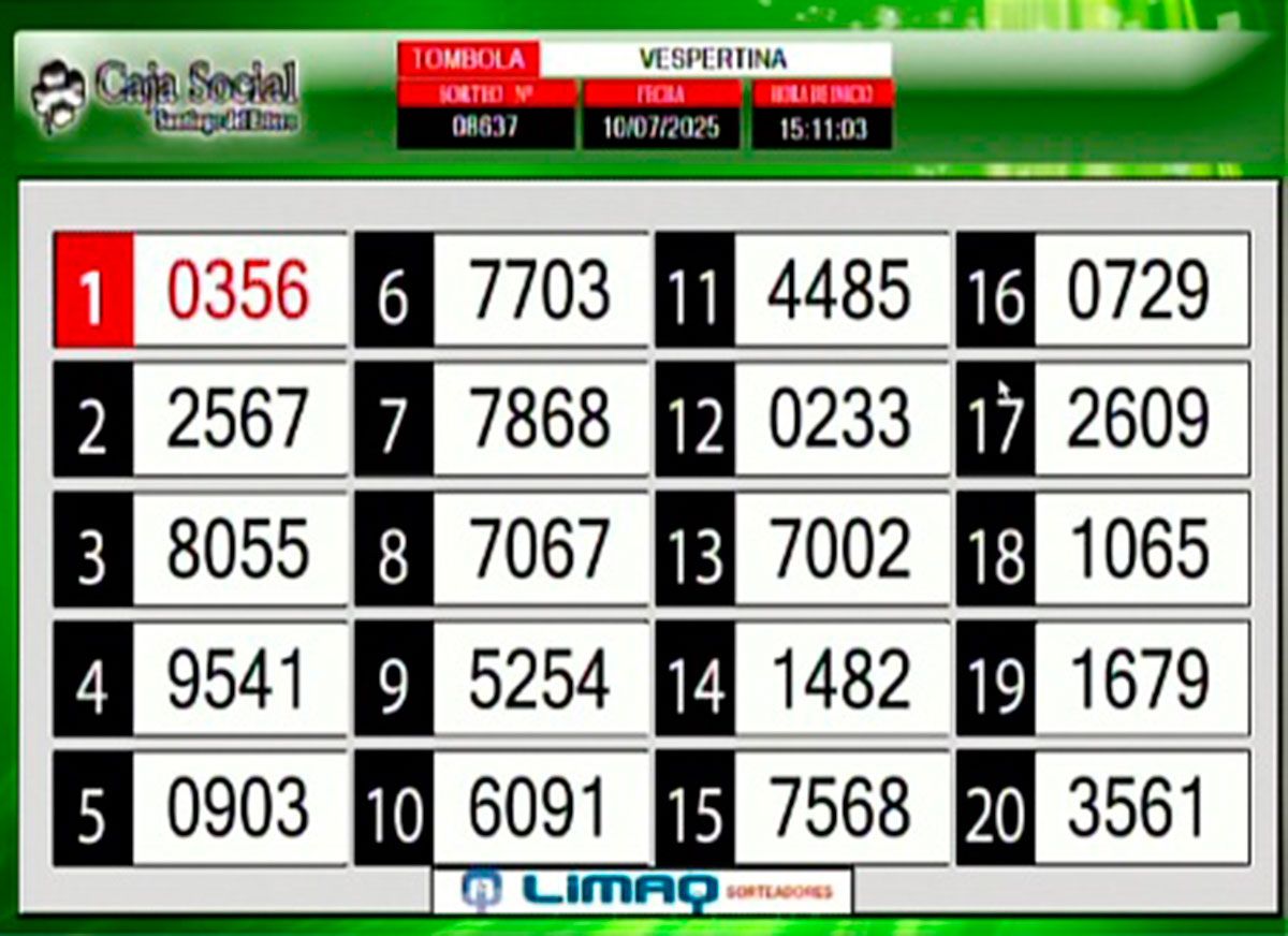 Como todos los días, este jueves 10 de julio de 2025, se llevó a cabo un nuevo sorteo de la Tómbola Santiagueña.