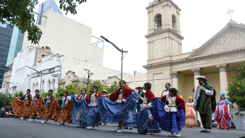 Frente a la majestuosa Catedral Basílica, cientos de vecinos y visitantes se congregaron para presenciar una puesta en escena que fusionó música, danza y espiritualidad, bajo la impecable interpretación del Ballet Folclórico Jorge Newbery. Con un colorido despliegue de vestuarios típicos y ritmos populares, el espectáculo invitó a un recorrido simbólico por distintas advocaciones marianas de América Latina.