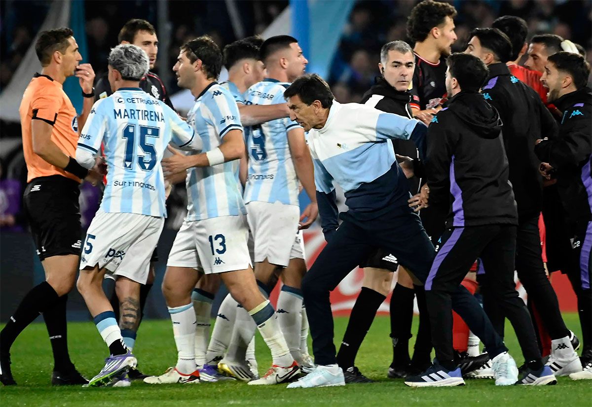 Lamolina invalidó el tanto de Racing y sancionó la pena máxima para la visita por una falta en la jugada previa. Hubo muchas protestas y el técnico local se fue expulsado por su reacción.