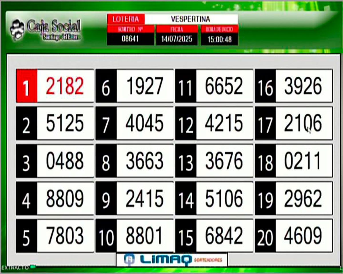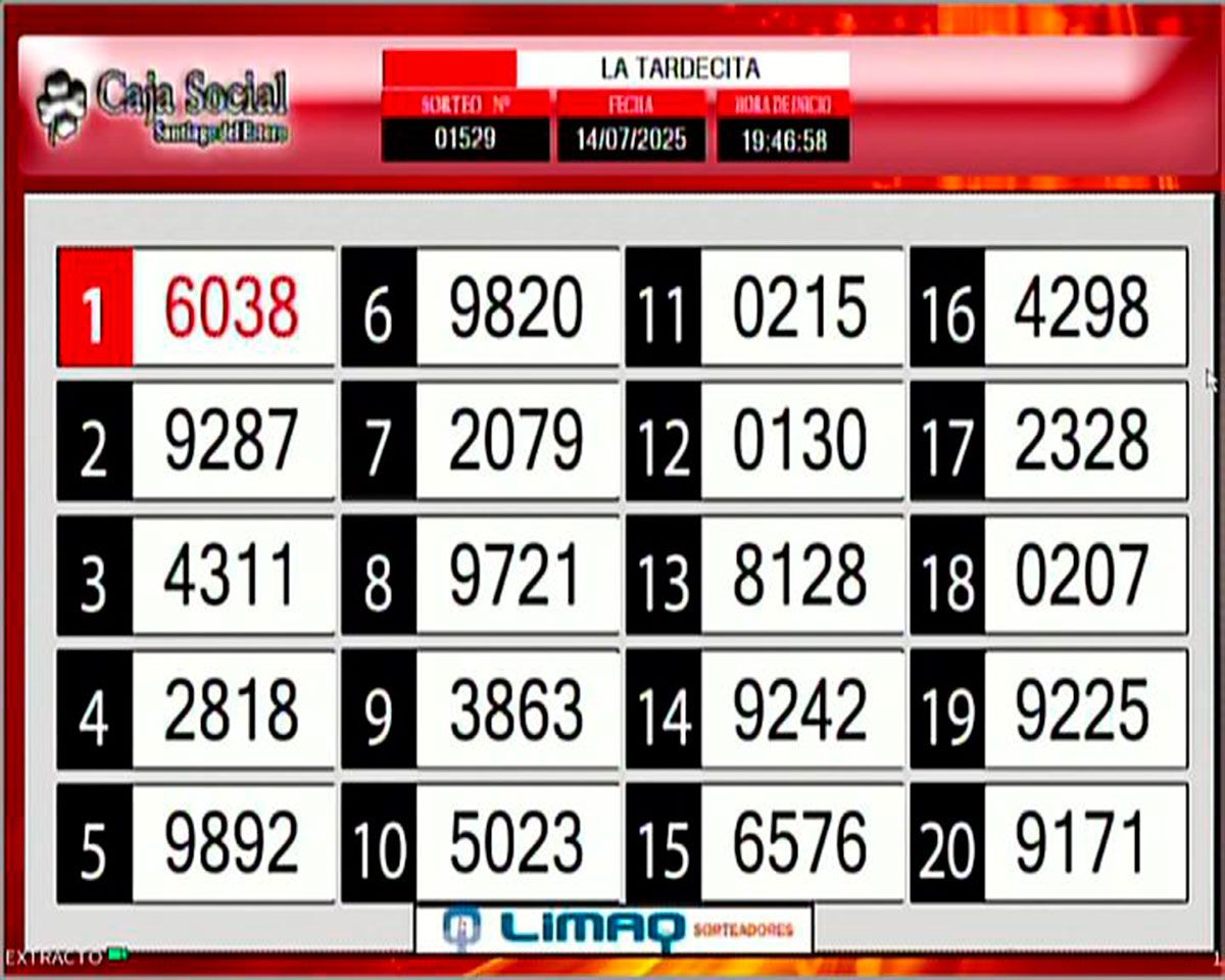 Como todos los días, este lunes 14 de julio de 2025, se llevó a cabo un nuevo sorteo de la Tómbola Santiagueña.