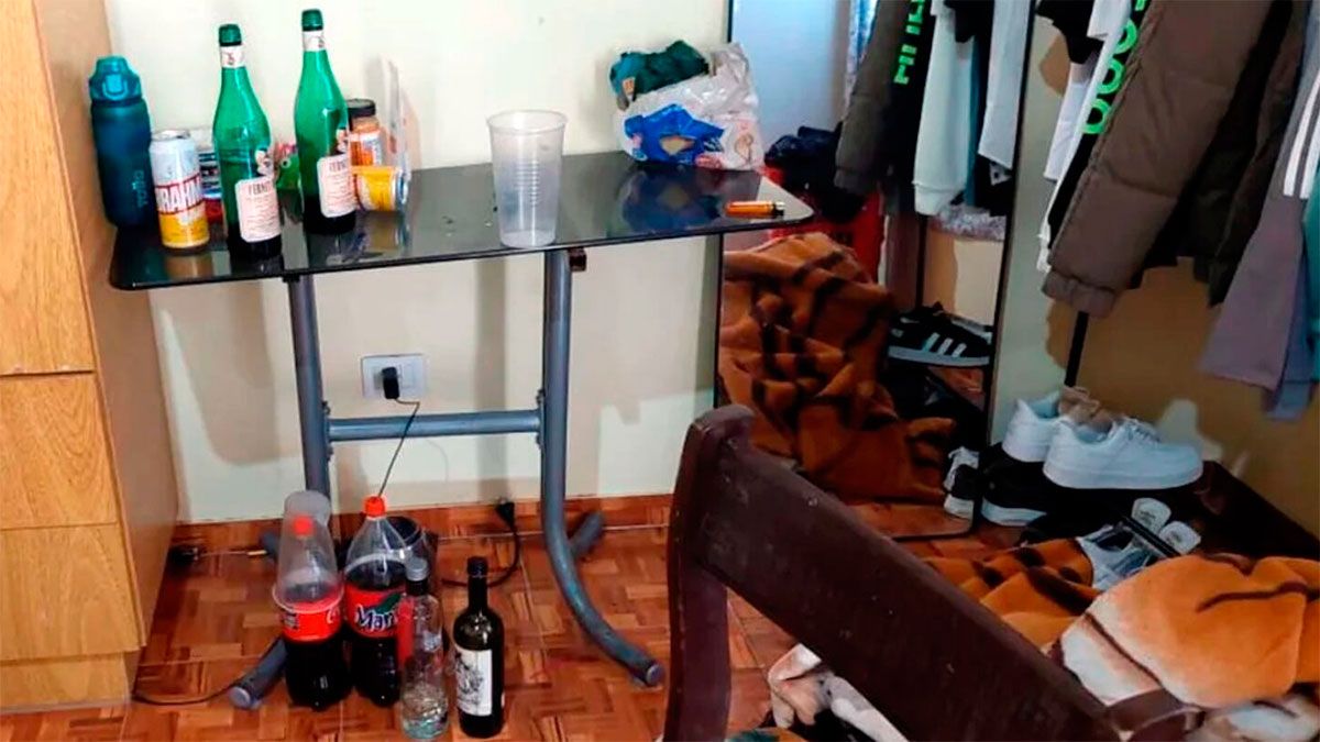 En el departamento se encontraron latas de cerveza y botellas de vino y fernet. También había ropa tirada por todo el lugar. “Se durmieron en la pieza y cuando se despertó uno, encontró todo vacío. Le robaron todo: dinero, artefactos como licuadora y parlantes”, detalló el familiar.
