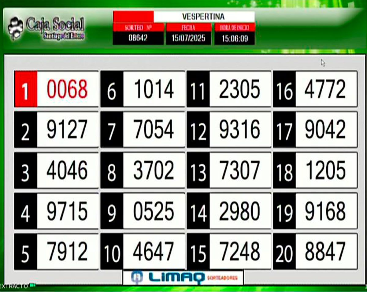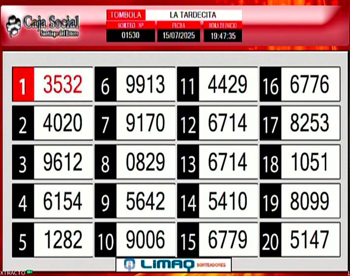 Como todos los días, este martes 15 de julio de 2025, se llevó a cabo un nuevo sorteo de la Tómbola Santiagueña.