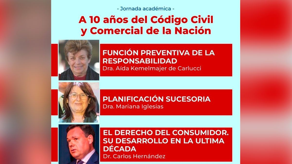 Entre los principales expositores se encuentran la Dra. Aída Kemelmajer de Carlucci, ex ministra de la Suprema Corte de Justicia de Mendoza e integrante de la Comisión Redactora del Código Civil y Comercial de la Nación; la Dra. Mariana Iglesias, presidenta del Instituto de Derecho Sucesorio de Rosario; y el Dr. Carlos Hernández, miembro de los grupos de trabajo de redacción del CCCN y presidente del Instituto Argentino de Derecho del Consumidor.