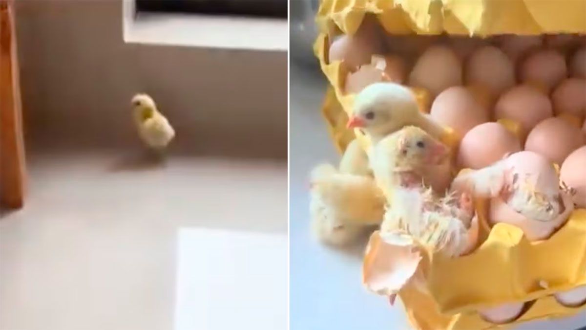 En el clip viral se escucha el sonido de una multitud de aves y cuando la mujer enfoca la cámara sobre los maples se observan algunos pollitos amarillos rompiendo del cascaron, mientras que otros ya habían salido. Algunos, incluso, estaban esparcidos por distintos ambientes de la casa.