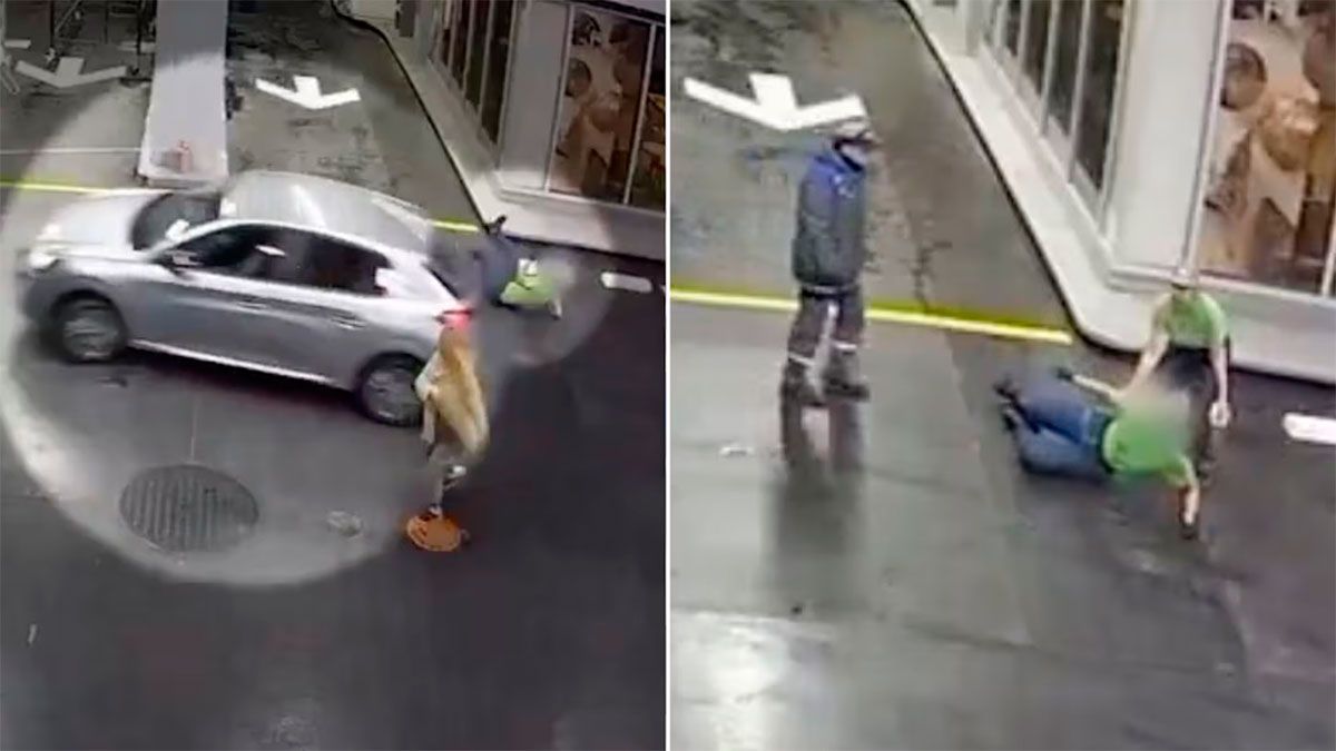 En ese contexto, el hombre subió al auto y se fue a toda velocidad, en el camino atropelló a ambas mujeres. La cajera quedó tirada en el suelo tras ser embestida y el resto de los trabajadores del lugar se acercó a asistirla. Todo quedó registrado en las cámaras de seguridad de la estación de servicios.