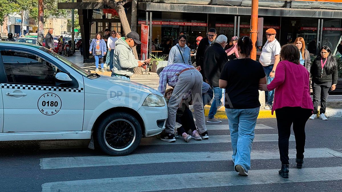 Minutos antes del mediodía de este lunes, un vehículo de alquiler protagonizó un incidente vial al embestir a una jubilada que quiso cruzar avenida Belgrano.