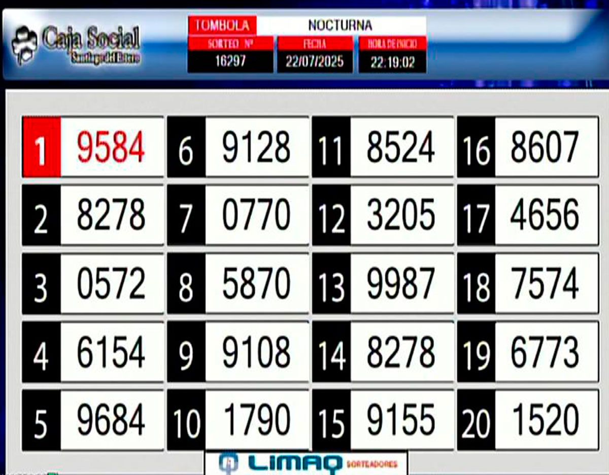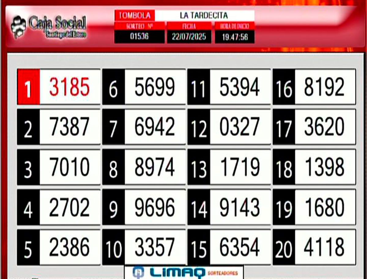 Como todos los días, este martes 22 de julio de 2025, se llevó a cabo un nuevo sorteo de la Tómbola Santiagueña.