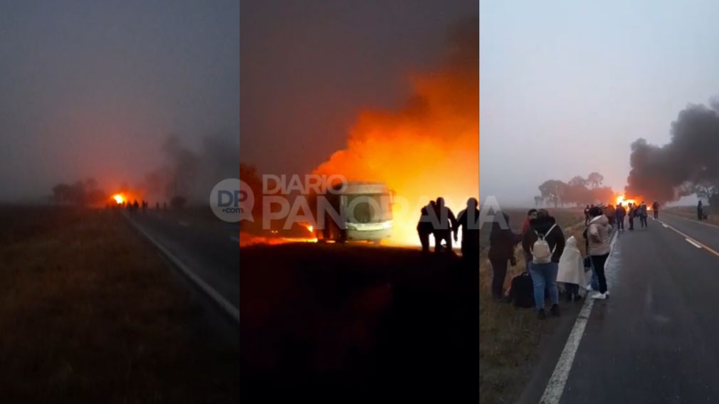 El colectivo quedó detenido a un costado de la ruta, mientras trabajaron en el lugar personal policial y bomberos para controlar las llamas. Los daños materiales serían cuantiosos.