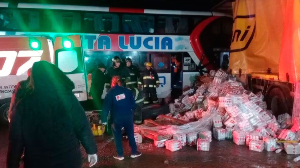 El impactante accidente ocurrió alrededor de las 22.45 del sábado, a la altura del kilómetro 510, cuando el micro de larga distancia se incrustó contra uno de los costados de la caja del camión por razones que todavía no se conocen.